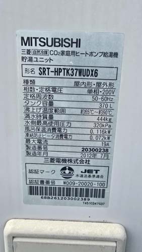 鹿島市高津原 三菱電機自然冷媒CO2家庭用ヒートポンプ給湯機 貯湯ユニットSRT-HPTK37WUDX6→コロナ自然冷媒CO2家庭用ヒートポンプ給湯機 ヒートポンプユニットCHP-DZ601K、貯湯ユニットCTU-46AZ1K エコキュート交換工事