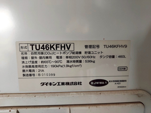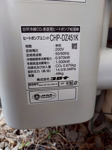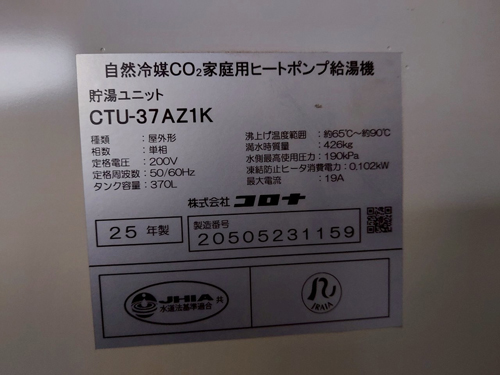伊万里市立花町 ダイキン自然冷媒CO2ヒートポンプ給湯機 貯湯ユニットTU46KFHV→コロナ自然冷媒CO2家庭用ヒートポンプ給湯機貯湯ユニットCTU-37AZ1K、ヒートポンプユニットCHP-DZ451K エコキュート交換工事