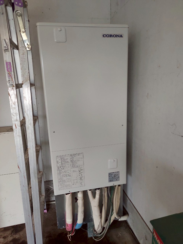 伊万里市立花町 コロナ自然冷媒CO2家庭用ヒートポンプ給湯機貯湯ユニットCTU-37AZ1K、ヒートポンプユニットCHP-DZ451K エコキュート交換工事